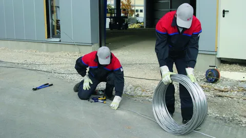 Round wires, strips and cables, different materials and diameters, for air-termination systems and down conductors.