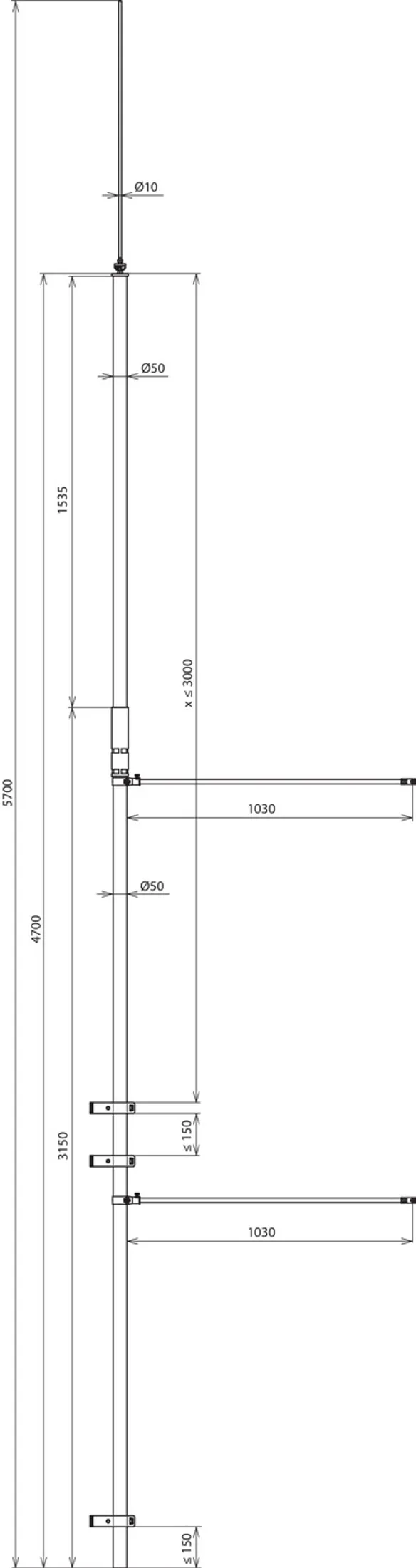 | Length of supporting tube | 4700 mm |
