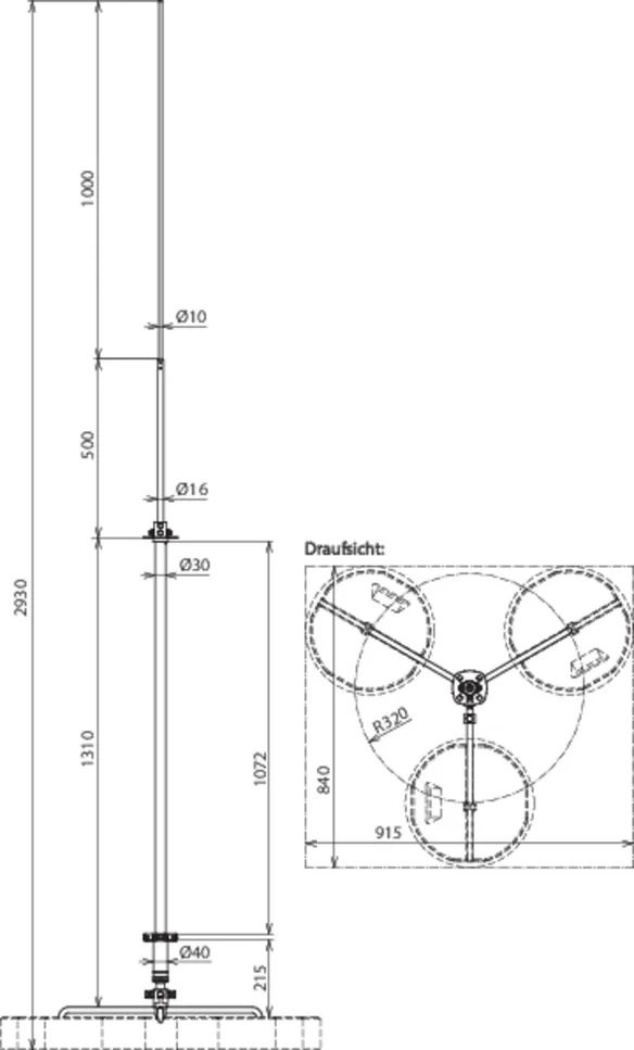 | Max. gust wind speed for 3 bases, 17 kg each, 2x HVI light outside | 110 km/h |
