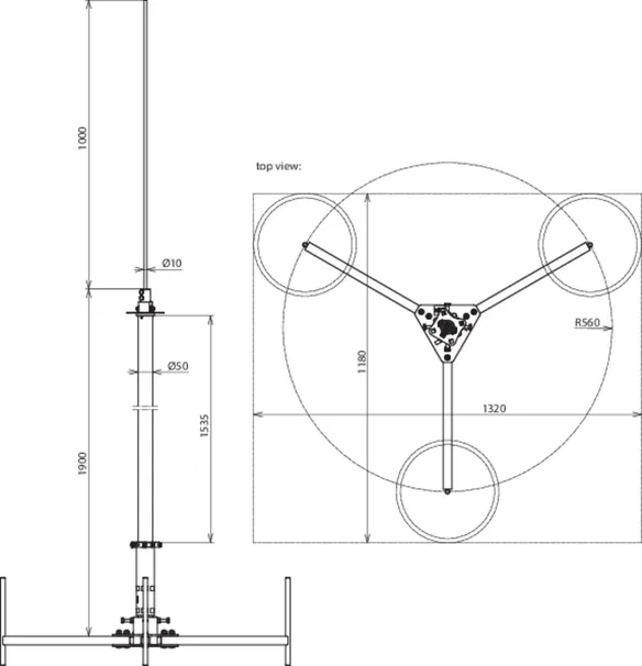 | Max. gust wind speed for 3 bases, 17 kg each, 2x HVI light outside | 132 km/h |