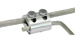 Parallel connector for establishing an equipotential bonding system in potentially explosive atmospheres. Tested for non-sparking use in potentially explosive atmospheres in Ex zone 1 and 2 (gases of explosion group IIC) and Ex zone 21 and 22 (dust). Small version for different cable diameters, with spring washer and two screws which are secured against working loose according to Supplement 2 of DIN EN 62305-3.