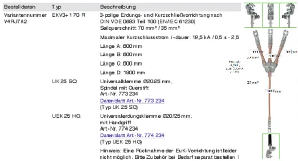 | Earth cable end | UEK 25 HG |