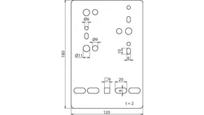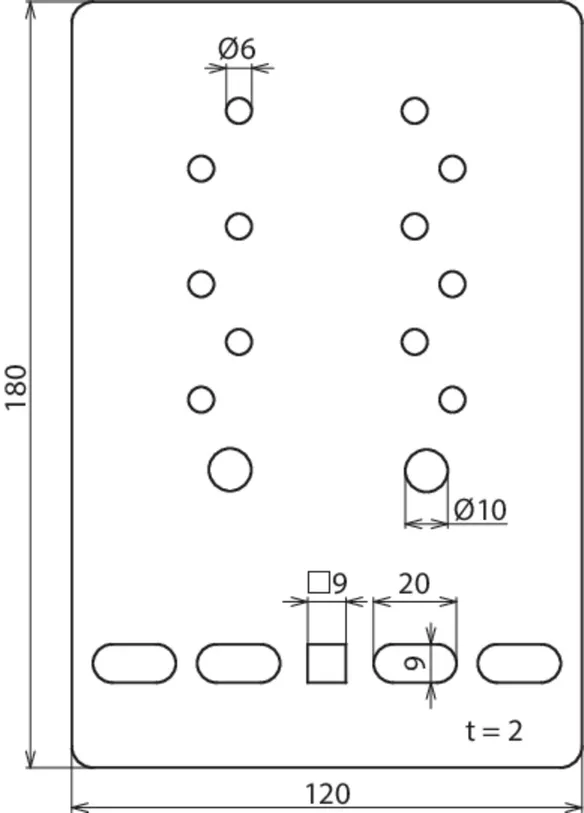 | Fixing holes for cable tray | [4x] 9 x 20 / [1x] 9 x 9 mm |