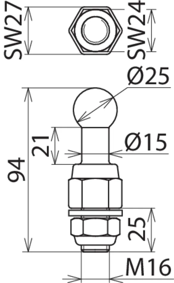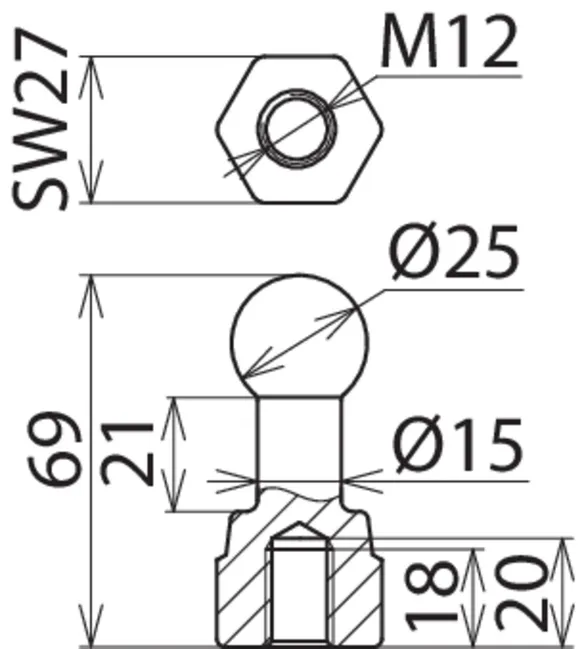| Fixed ball point Ø | 25 mm |