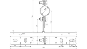 For attaching supporting tubes or air-termination rods D40 / D50, with double clamp for connecting 2x Rd 8-10 mm.
