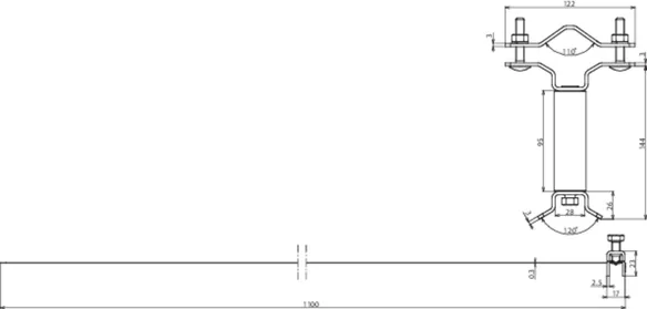 Wall mounting bracket, adjustable from 230-1300 mm