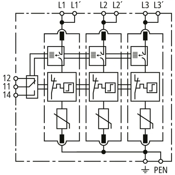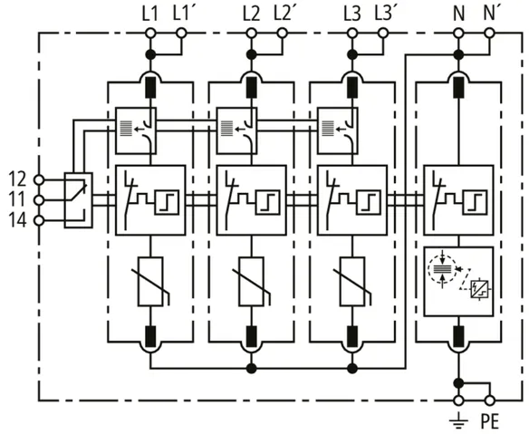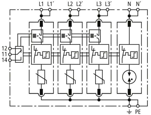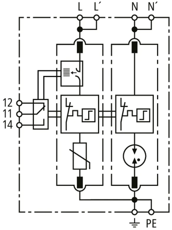 | Max. discharge current (8/20 µs) [N-PE] (Imax ) | 120 kA |