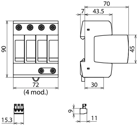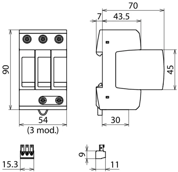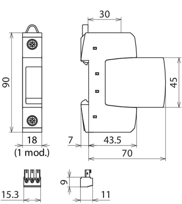 | SPD according to EN 61643-11 / IEC 61643-11 | type 2 / class II |