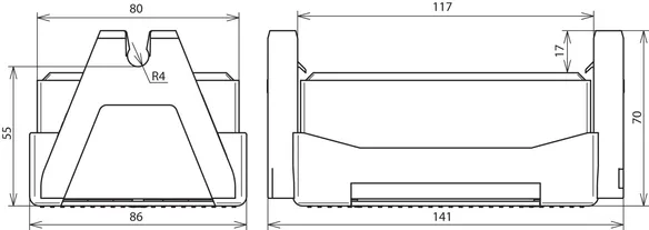 Separate plastic upper part for type KF (Part No. 253 016) is available upon request.