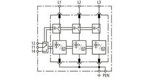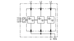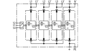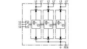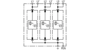 | Lightning impulse current (10/350 µs) [L1+L2+L3-PEN] (Itotal ) | 75 kA |