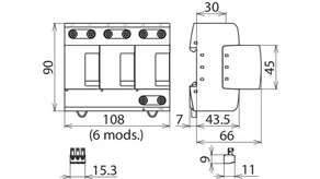 | SPD as per EN 61643-11 / IEC 61643-11 | type 1 + type 2 + type 3 / class I + class II + class III |