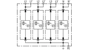 | Lightning impulse current (10/350) [L1+L2+L3+PE] (Itotal ) | 50 kA |