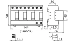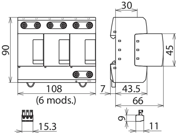 | SPD according to EN 61643-11 / IEC 61643-11 | type 1 + type 2 + type 3 / class I + class II + class III |