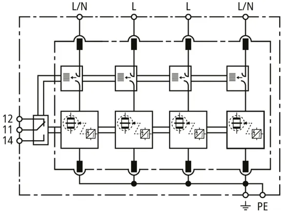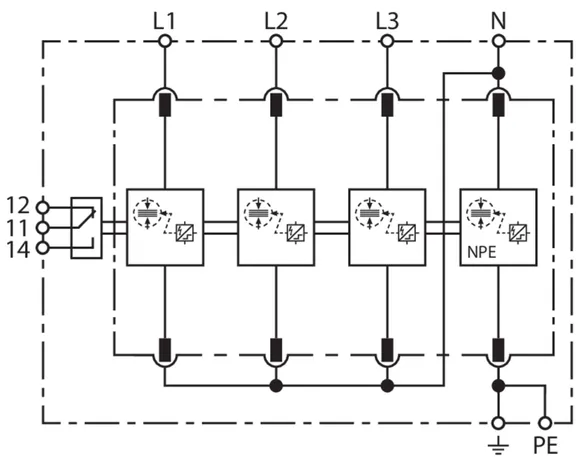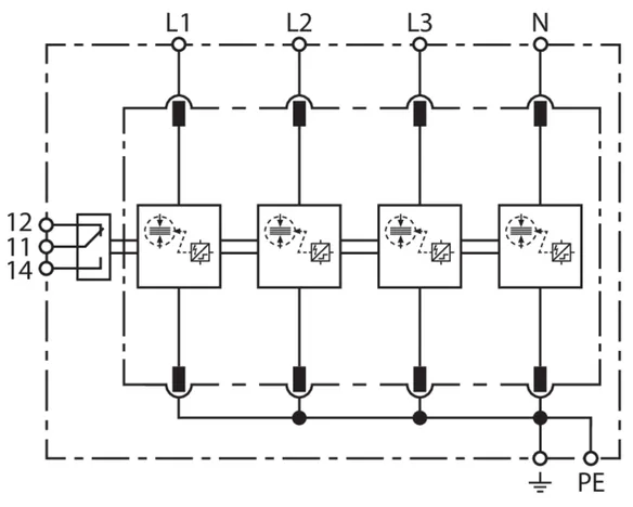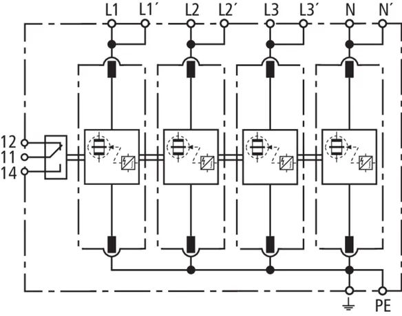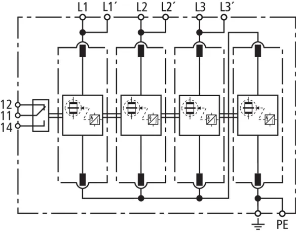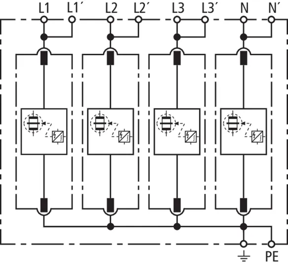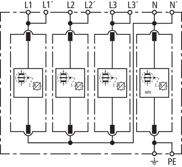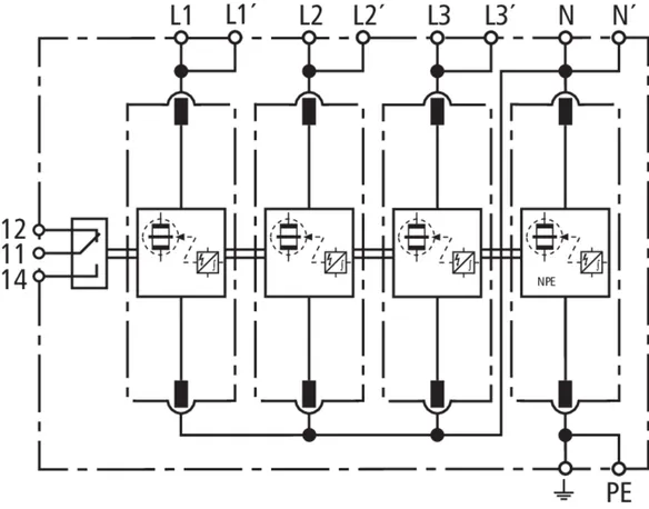 | Lightning impulse current (10/350 µs) [L1+L2+L3+N-PE] (Itotal ) | 100 kA |
