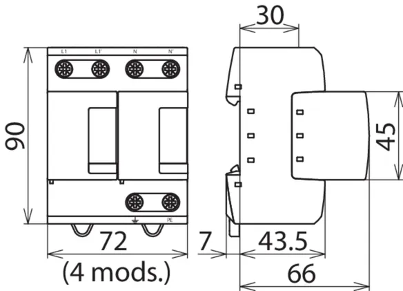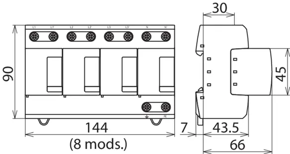 | Lightning impulse current (10/350 µs) [L+N-PE] (Itotal ) | 50 kA |