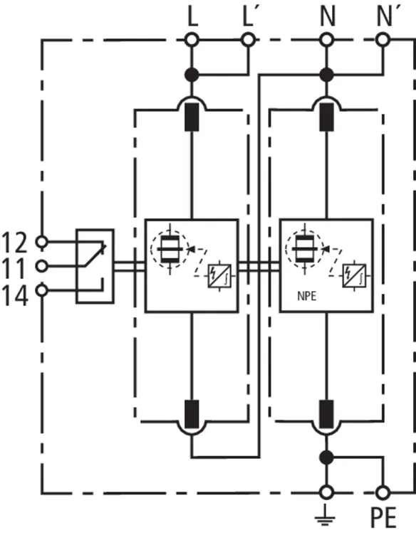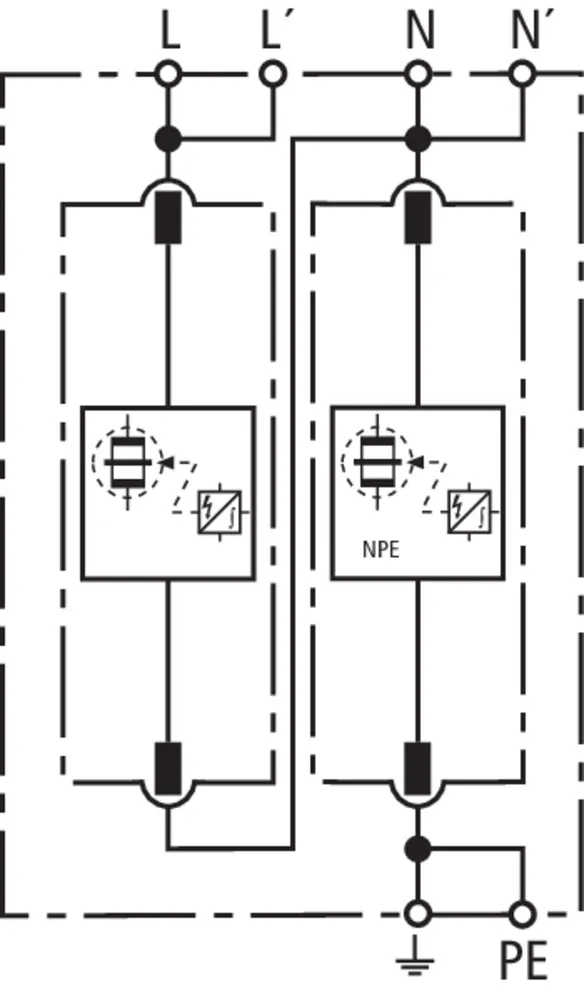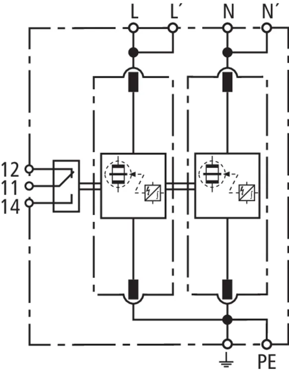 | Lightning impulse current (10/350 µs) [L, N-PE] (Iimp ) | 25 kA |