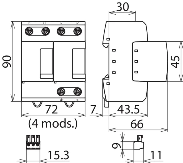 | Voltage protection level [L-PE]/[N-PE] (UP ) | ≤ 1.5 / ≤ 1.5 kV |