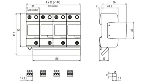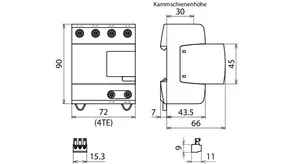 | SPD according to EN 61643-11 / IEC 61643-11 | type 1 + type 2 + type 3 / class I + class II + class III |