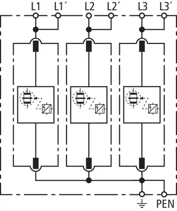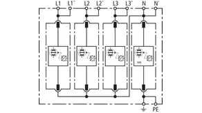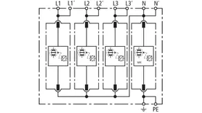 | Lightning impulse current (10/350 µs) [L1+L2+L3-PEN] (Itotal ) | 75 kA |