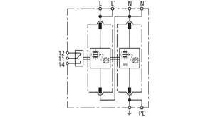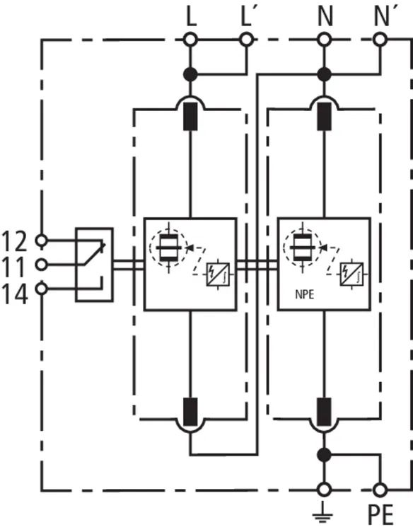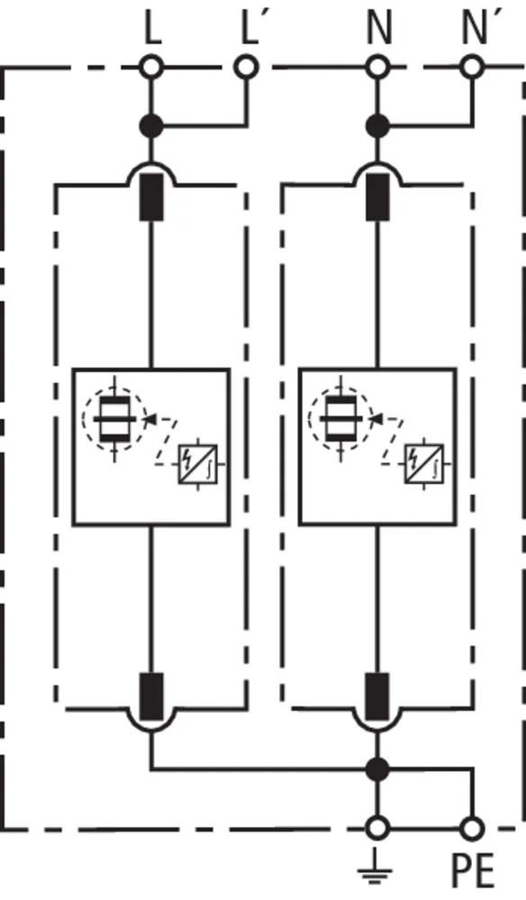 | Lightning impulse current (10/350 µs) [L, N-PE] (Iimp ) | 25 kA |