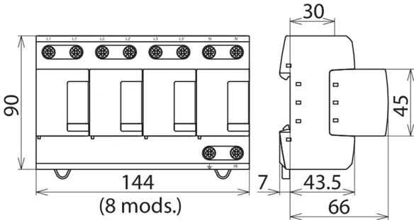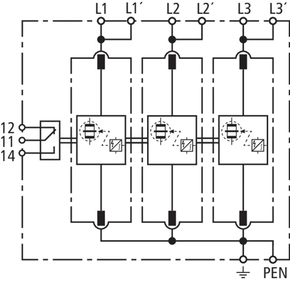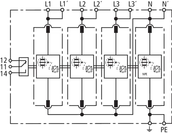 | Lightning impulse current (10/350 µs) [L1+L2+L3+N-PE] (Itotal ) | 100 kA |
