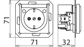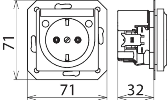 • With retaining ring (diameter of 60 mm) for installation in switch boxes with a diameter of 60 mm and a depth of 40 mm