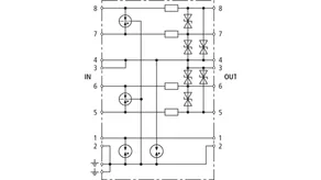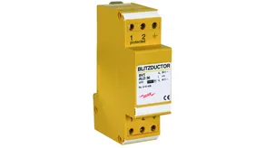 Energy coordinated combined arrester for protecting the rectifier in the protective circuit (red colour). Pluggable remote signalling contact (break contact) for overload indication (temperature monitoring of the varistors). Installation in sheet metal housing recommended. Low impulse sparkover voltage due to capacitive control.