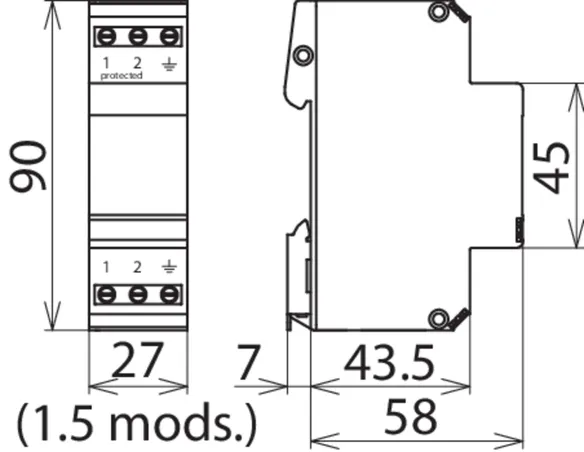 | D1 Lightning impulse current (10/350 µs) per line (Iimp ) | 0.8 kA |