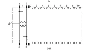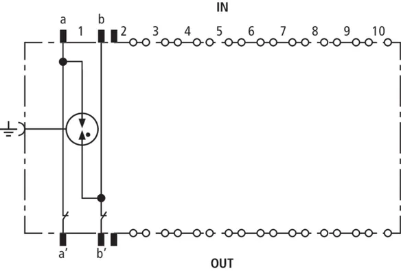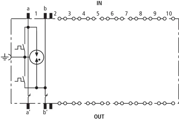 - LSA disconnection block function integrated in the lightning current arrester allows protected testing, disconnecting and patching