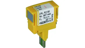 Protective plug (one pair), energy-coordinated with DRL plug-in SPD block, for use as single-stage protective device for terminal equipment for high-frequency transmissions such as G.703 or ISDN U2m, S2m and S0. To be mounted into EF 10 DRL. Installation recommended only in combination with DRL plug-in SPD block.