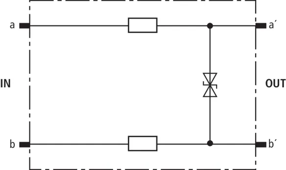 Protective plug (one pair), energy-coordinated with DRL plug-in SPD block, for use as single-stage protective device for terminal equipment. Low voltage protection level line-line for unearthed interfaces. To be mounted into EF 10 DRL. Installation recommended only in combination with DRL plug-in SPD block.