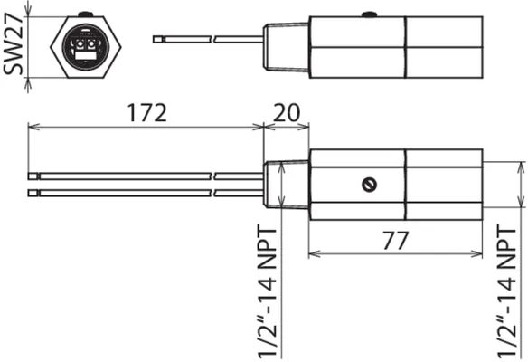 For mounting on (field / device side) 1/2-14 NPT female thread / 1/2-14 NPT male thread