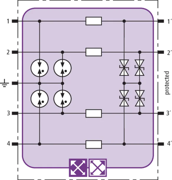 - All protection components are integrated in the protection module