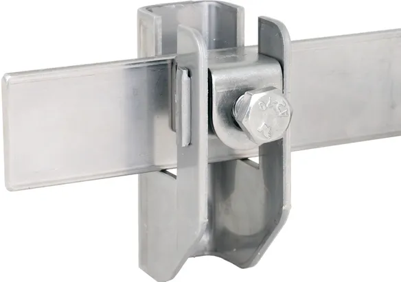 Flat strip holder with thrust piece, projection: 15 mm, St/tZn