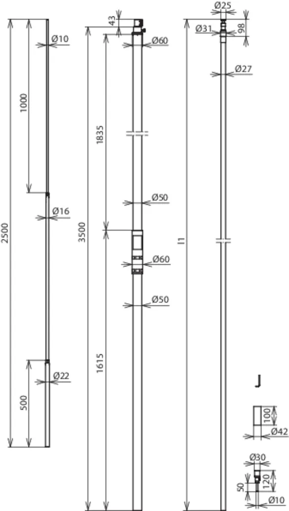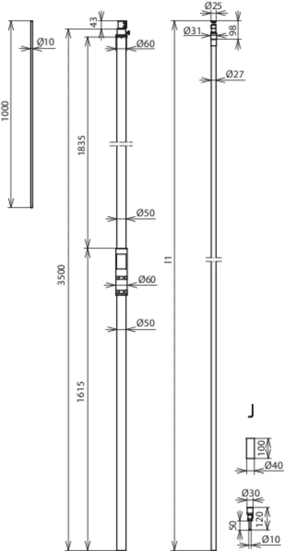 | Max. free length with air-termination rod (wall mounting) | 5500 mm |