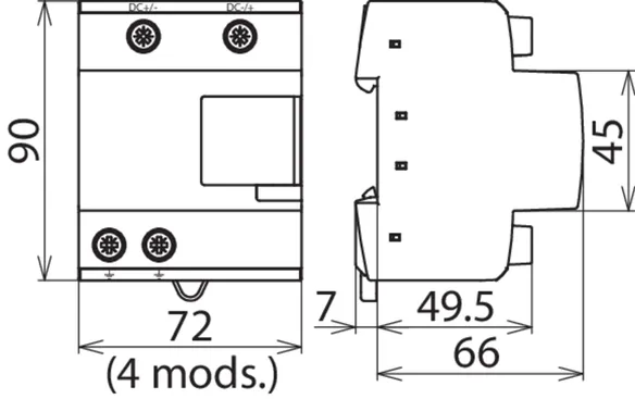 | Total discharge current (10/350 µs) [DC+/DC- -> PE] (Itotal ) | 12.5 kA |