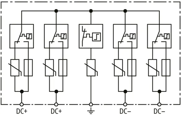 | Nominal discharge current (8/20 µs) [(DC+/DC-) --> PE] (In ) | 20 kA |