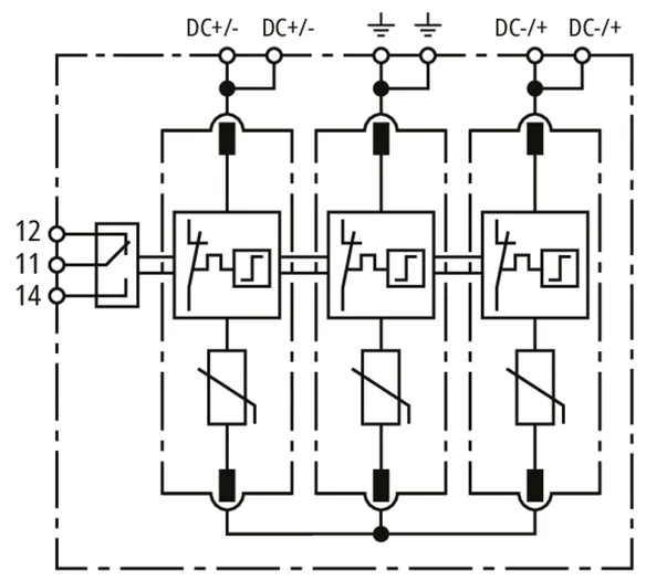 | Nominal discharge current (8/20 µs) [(DC+/DC-) --> PE] (In ) | 12.5 kA |