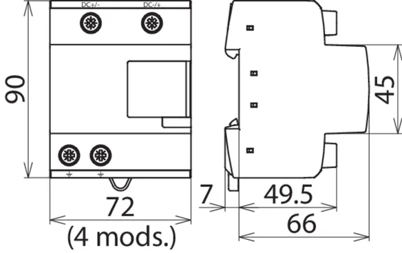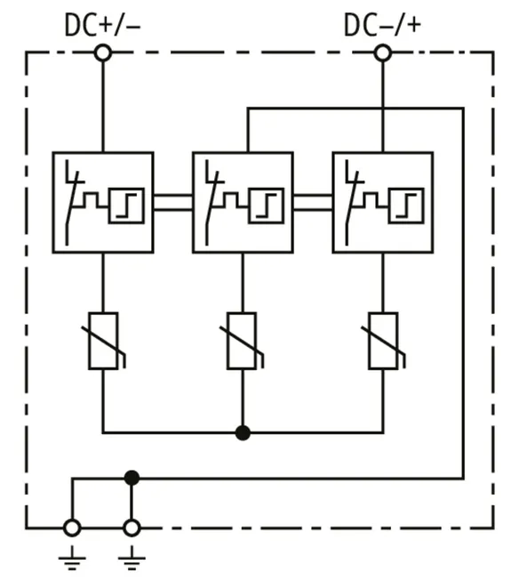 | Max. discharge current (8/20 µs) [(DC+/DC-) --> PE] (Imax ) | 25 kA |