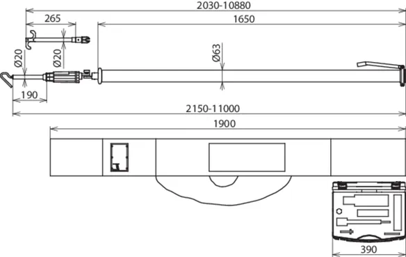 | Total length (lG max / IG min ) | 11000 / 2150 mm |