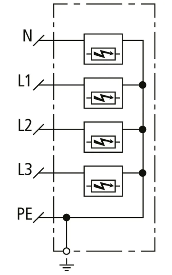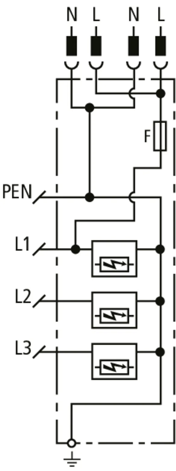 | Lightning impulse current (10/350 µs) [L1+L2+L3-PEN] (Itotal ) | 22.5 kA |