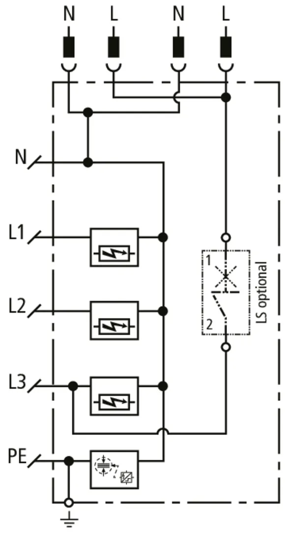 | Lightning impulse current (10/350 µs) [L, N-PE] (Iimp ) | 12.5 kA |