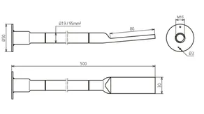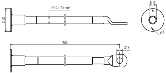 | Borehole cable lug | 13 mm for M12 and 17 mm for M16 |