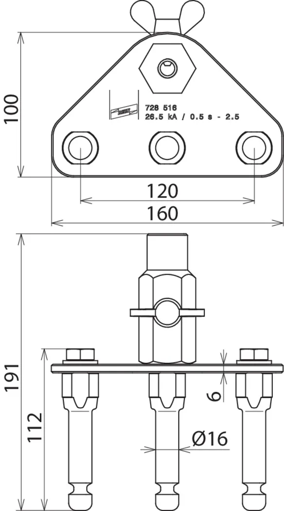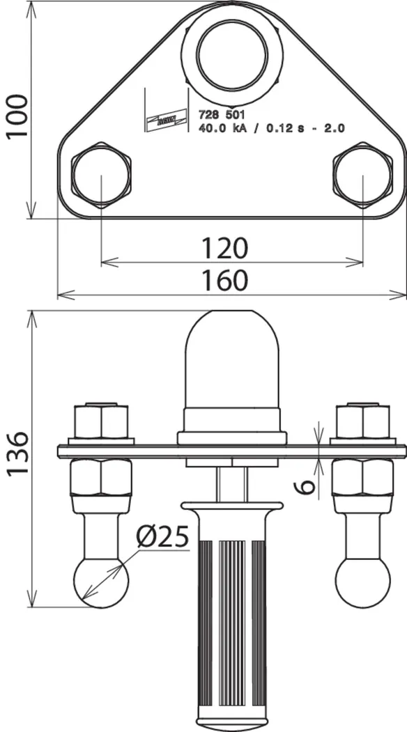 - For connecting single-pole earthing and short-circuiting devices to transformers of overhead line masts or to fuse holders