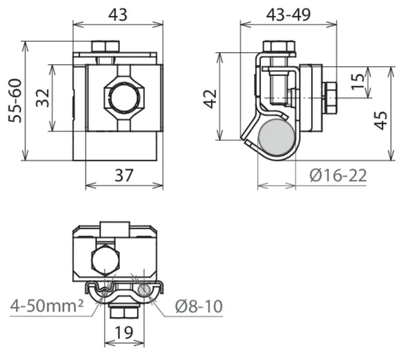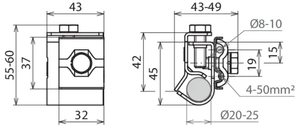 | Connection Rd | 1-2 conductors Rd Ø6-8 mm / 1x Ø10 mm |