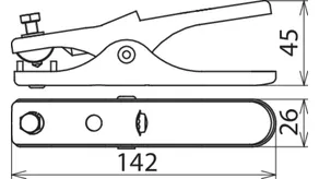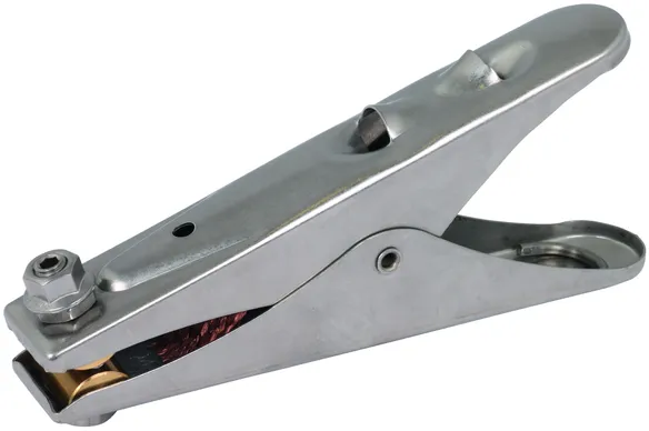 Brass jaw with steel tips (Material No. 1.4104) and copper contact clip.