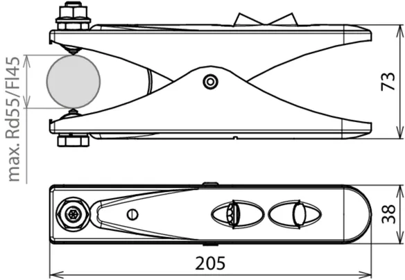 | Clamping range Rd / Fl | up to Ø55 / up to 45 mm |