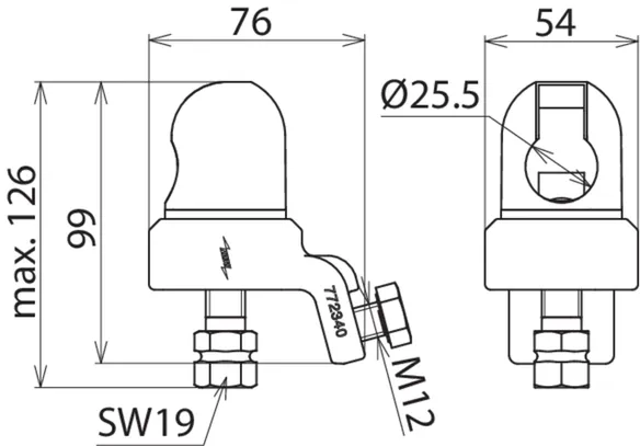| For round pins Ø | 25 mm |