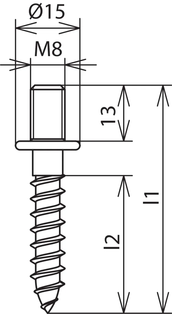Hanger bolt for fixing conductor, flat strip and rod holders with female thread.