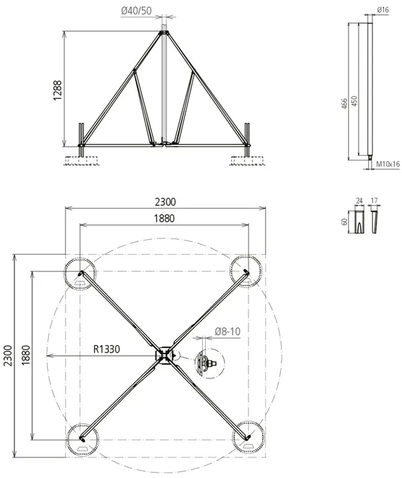 | Number of concrete bases | 3-12 blocks, 17 kg each |